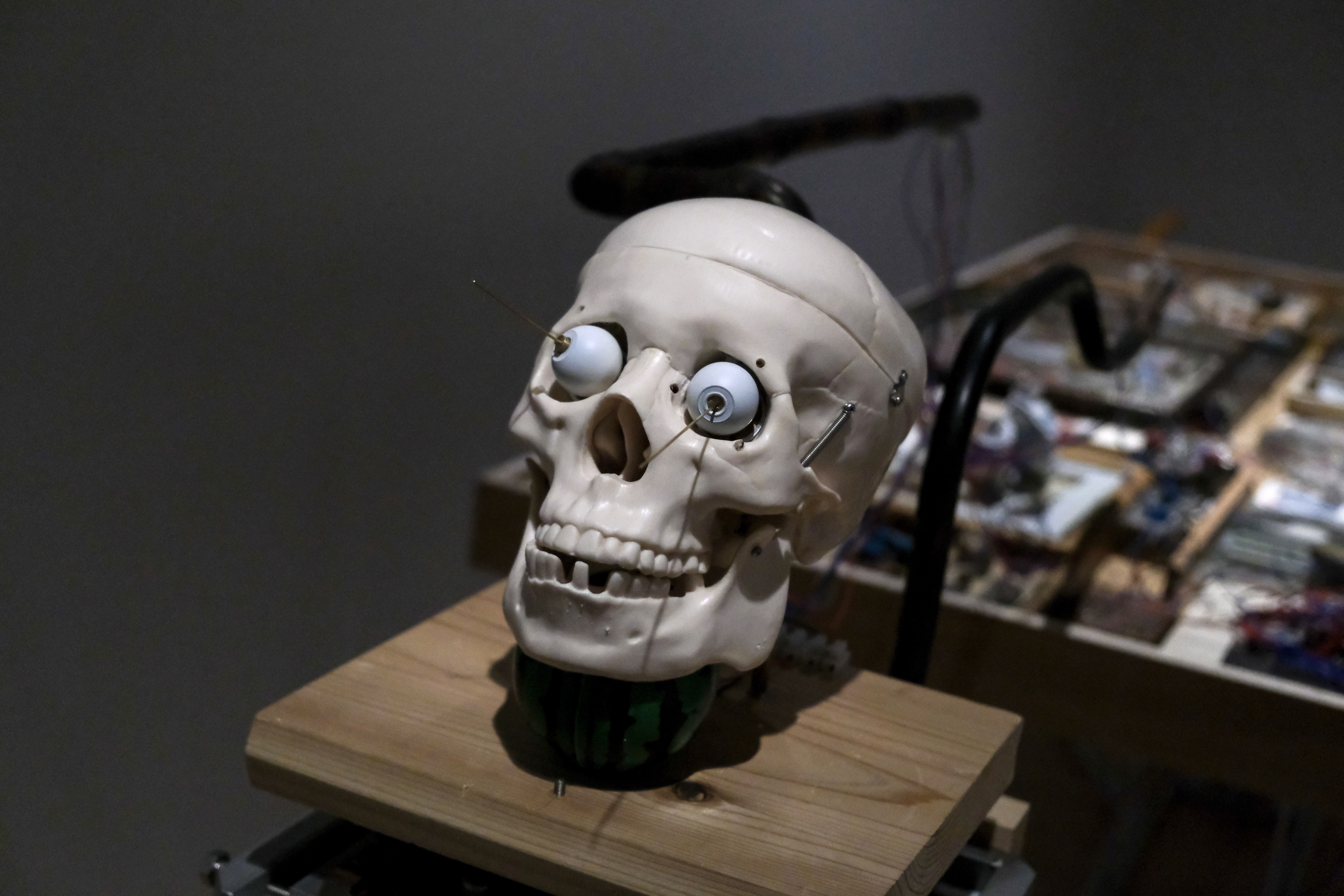 さらに歩みを進めると、奥の展示室にはアートユニットの片岡純也+岩竹理恵による《KEK曲解模型群》が展覧されている。こちらは、高エネルギー加速器研究機構(KEK)が開催したアーティスト・イン・レジデンスの成果ならびに、「つくばサイエンスハッカソン2025」の一環として制作された作品に近作を加えて構成されたものだ。