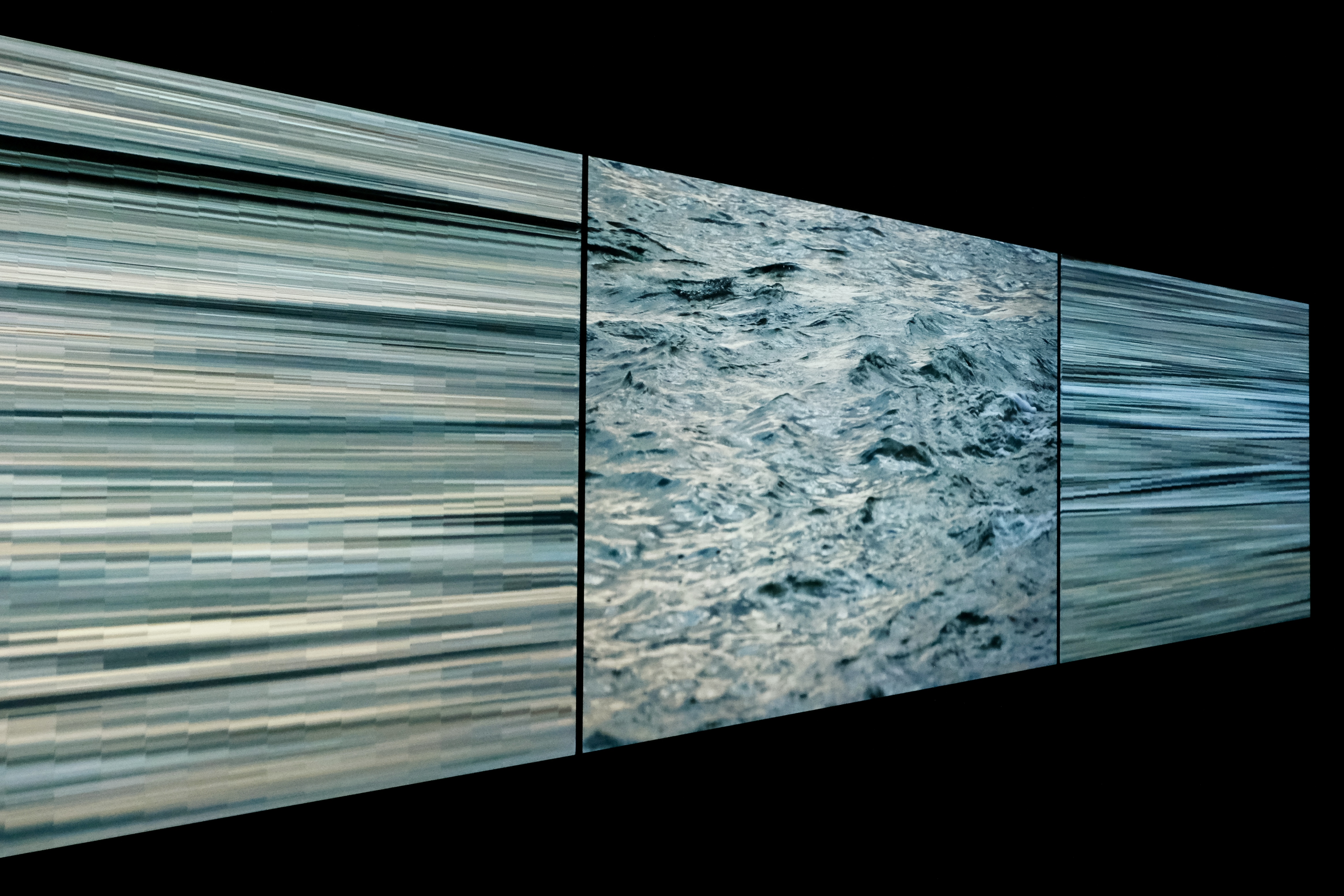 同じフロアには、ニュートリノという素粒子を観測する巨大装置、スーパーカミオカンデが詩を紡ぎ出す平川紀道の《(non)semantic process[version for neutrinos detected by Super-Kamiokande]》や、空間と時間の流れを互いに重なりあう存在として比喩的に読み替えた古澤龍の映像作品《Mid Tide #3》など、「量子ネイティブ」な創造的思考・アイデアをもとに作られた作品が並ぶ。
