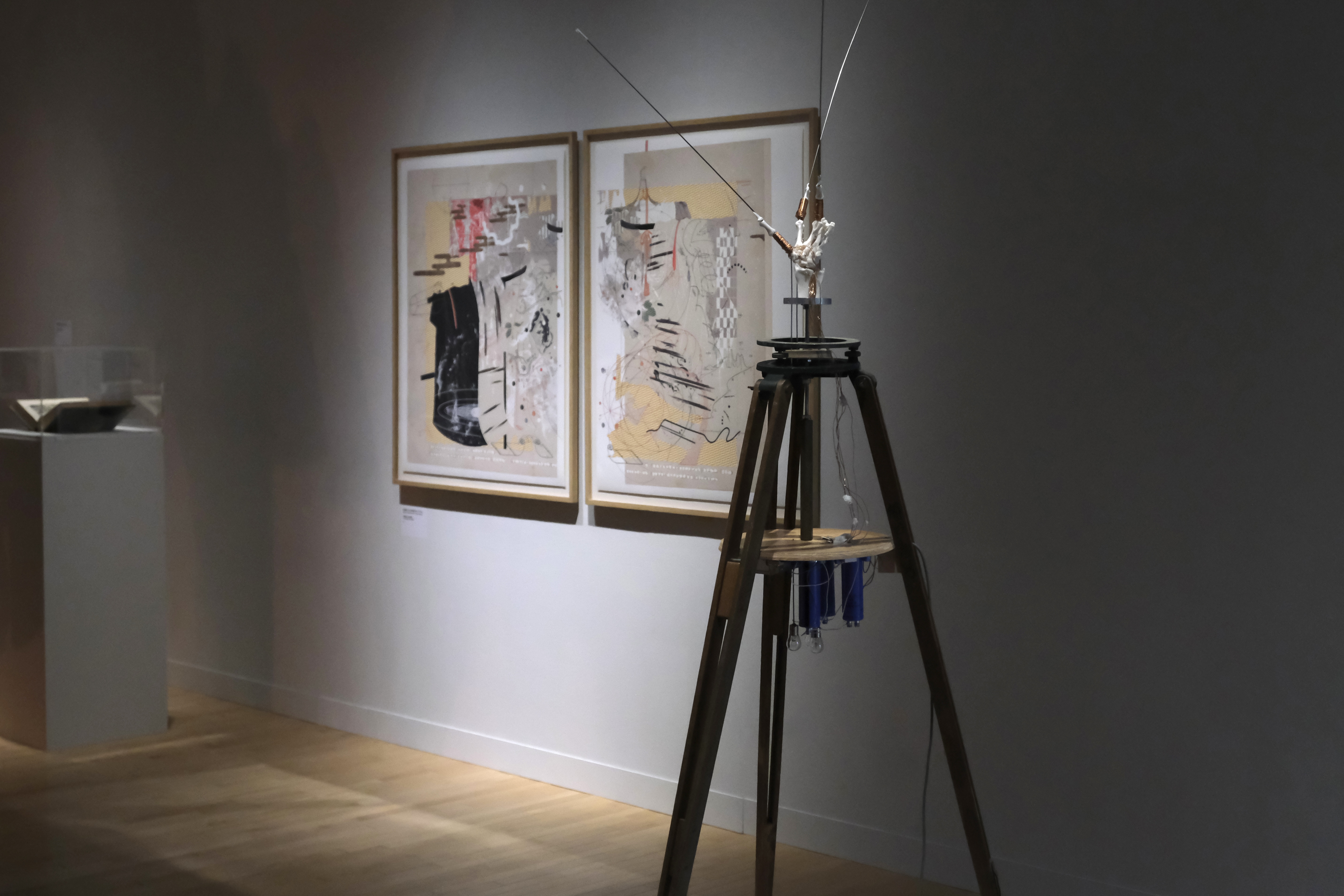 片岡と岩竹は、本展におけるもうひとつのテーマである「量子」を含む物理学の概念を、アートの視点から「曲解」することで新たなイメージを生み出す。これらの作品は、量子もつれ(エンタングルメント)やトンネル効果、フレミングの左手の法則など、難解に思われる物理現象をアートという媒体に翻訳し直すような試みと言えるだろう。