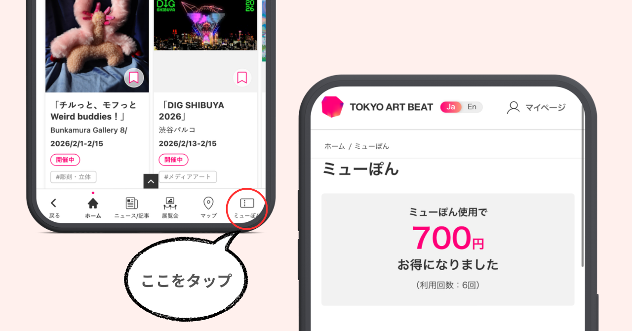 Tokyo Art Beatの展覧会チケット割引機能「ミューぽん」がアップデートされました。