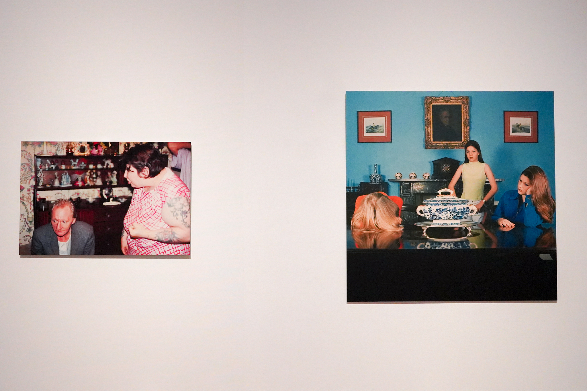 隣で展示されているリチャード・ビリンガムの《無題》(1994)とサラ・ジョーンズの《ダイニングルーム(フランシス・プレイス)》(1997)に注目してほしい。前者は公営住宅に暮らす作家自身の両親で、アルコール依存症に苦しむ父親と刺青が入った母親の口論を、後者は裕福な家庭の室内で孤立する10代の少女たちをとらえている。労働者階級と中流階級という異なる背景にありながら、ふたつの作品はともに英国の家庭が抱える複雑さや緊張感を浮かび上がらせる。