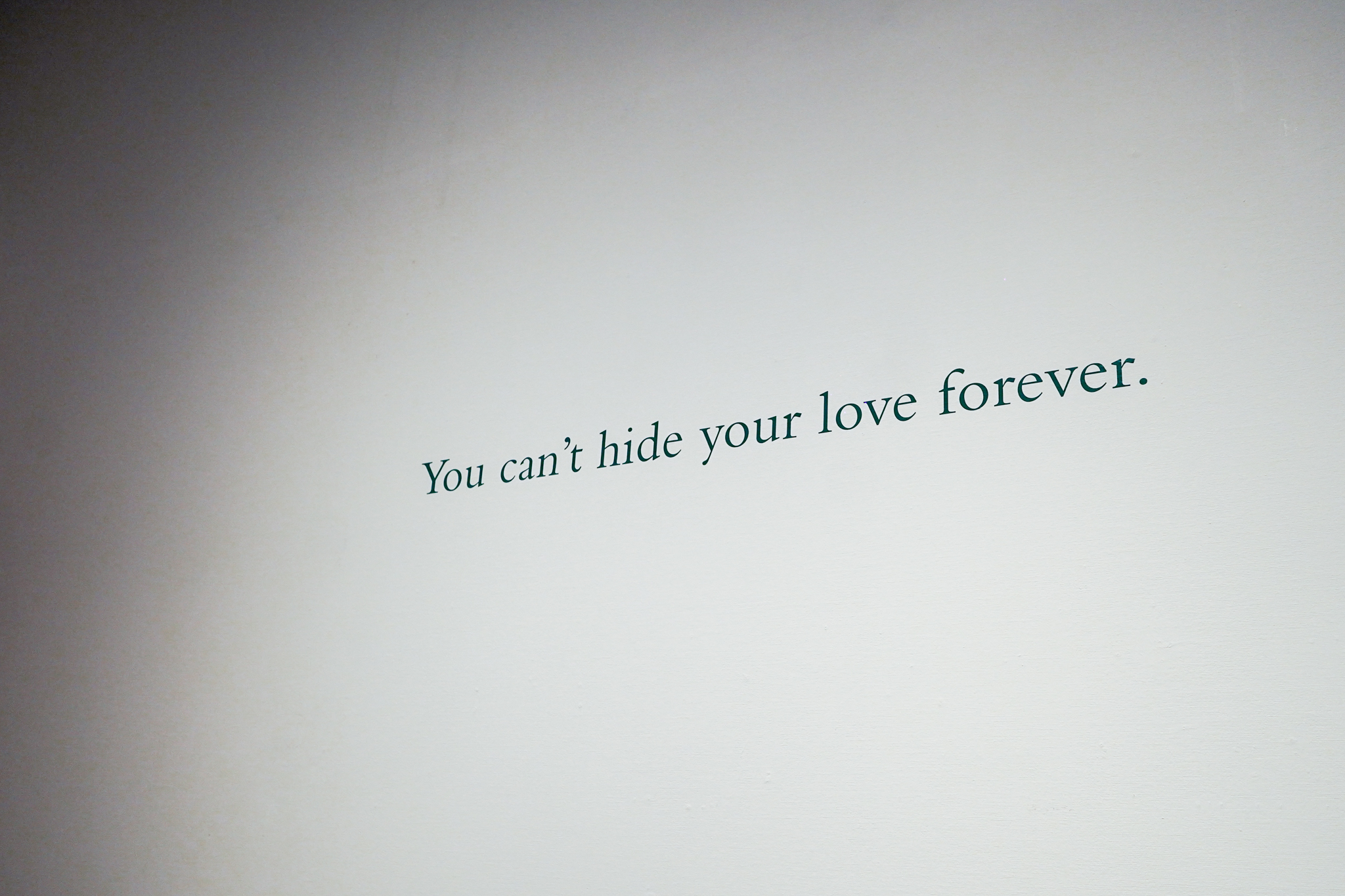 たとえば、ダグラス・ゴードンの《指示(ナンバー1)》(1992)は、映像を用いて、ある集団のなかで蓄積され共有される記憶や認識のあり方を問う作品である。1992年にローマで開催された展覧会のために制作された本作は、キュレーターに対し展覧会期間中に毎日実行するべき指示書を提供するというものだった。指示の内容は、市内のカフェに電話をかけ、バーテンダーに店内の客を呼び出してもらい、「君は君の愛を永遠に隠しておくことはできない」というメッセージを伝えて電話を切るというものだった。その象徴的な言葉は大きく壁に書かれており、展覧会グッズとしても登場する。