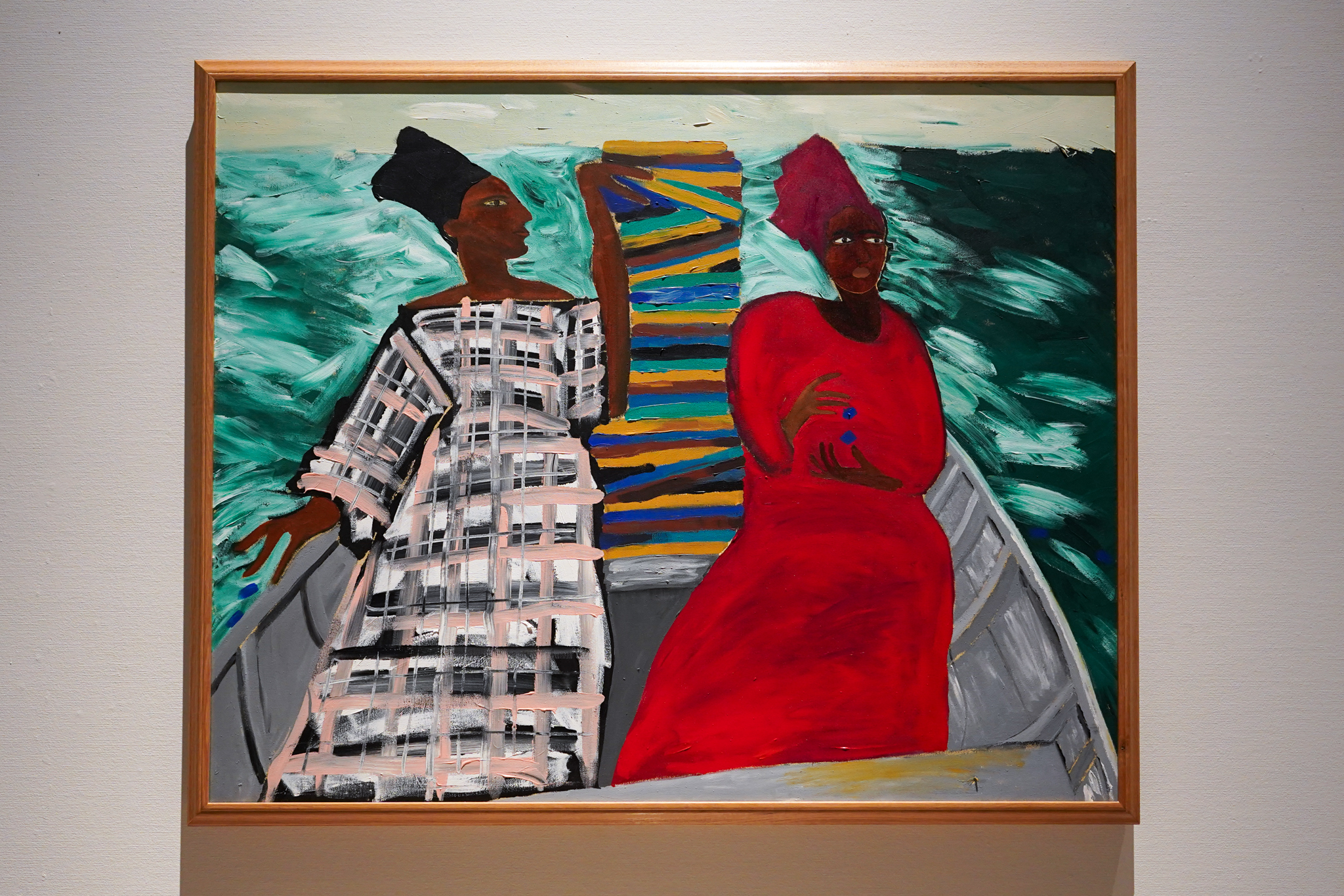 本展の特徴のひとつは黒人作家の実践に焦点を当てるところにある。2026年のヴェネツィア・ビエンナーレ英国代表に選ばれているルベイナ・ヒミドの《二人の間で私の心はバランスをとる》(1991)は、19世紀フランスの画家ジェームス・ティンの海景画をもとにした作品である。アフリカ調の洋服を身にまとったふたりの女性が、植民地時代の地図を破って海に捨てることで、白人男性によって支配されてきた航海術や知識の体系を否定し、黒人女性が主体となって歴史を語ろうとする意思を示している。