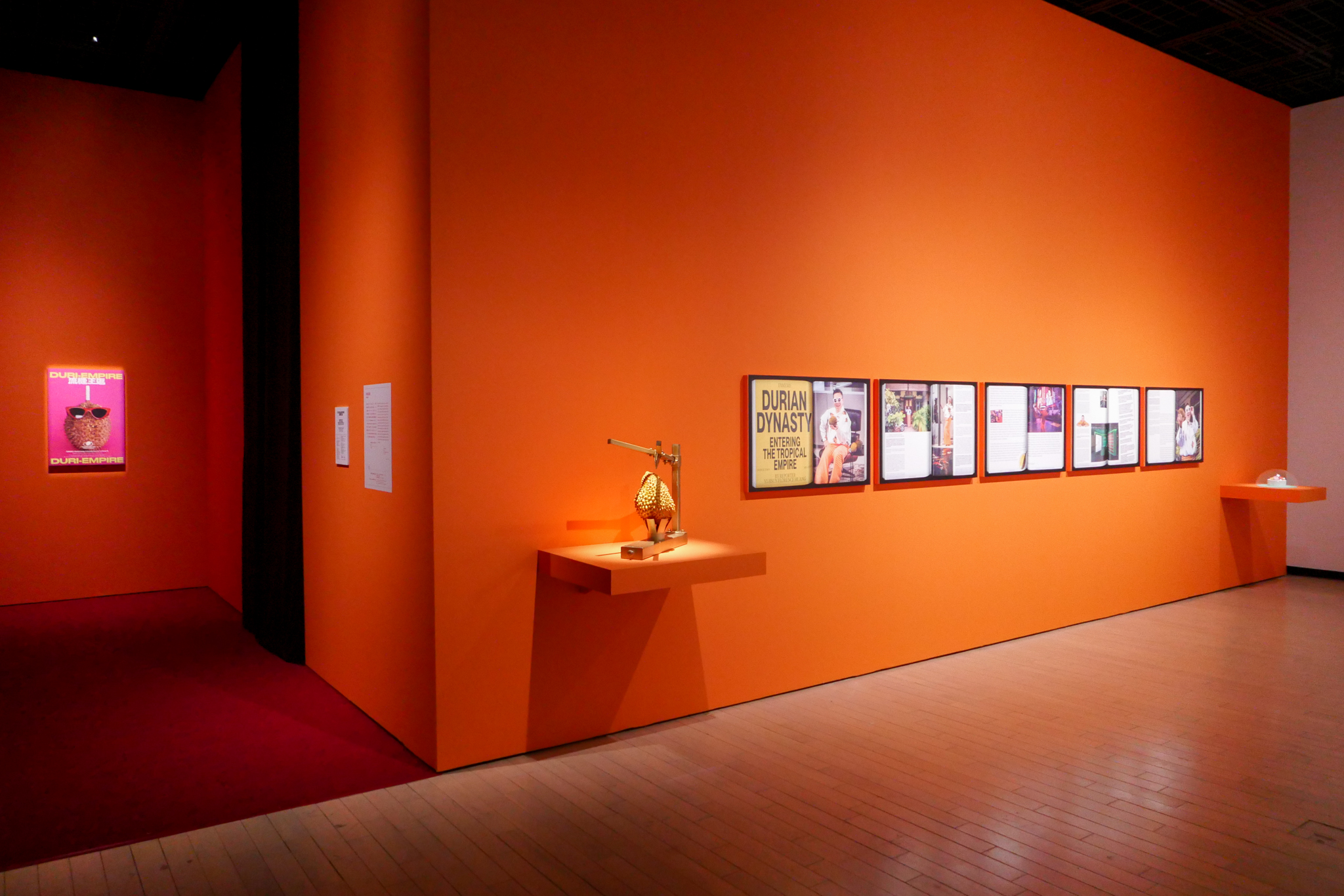 世界一臭い果物として知られるドリアンのオブジェが置かれている華やかなコーナーはFAMEMEによる展示だ。《流種王返(ドリアン王が帰ってきた!)》(2024)は、様々な国を巡り母国に戻ったFAMEMEが、これから直面する家族との関係や自身のアイデンティティ探求、そしてパンデミックでの大切なものの喪失を乗り越えて気を取り直し、ドリアン家業に再び挑戦する姿を描き出す。