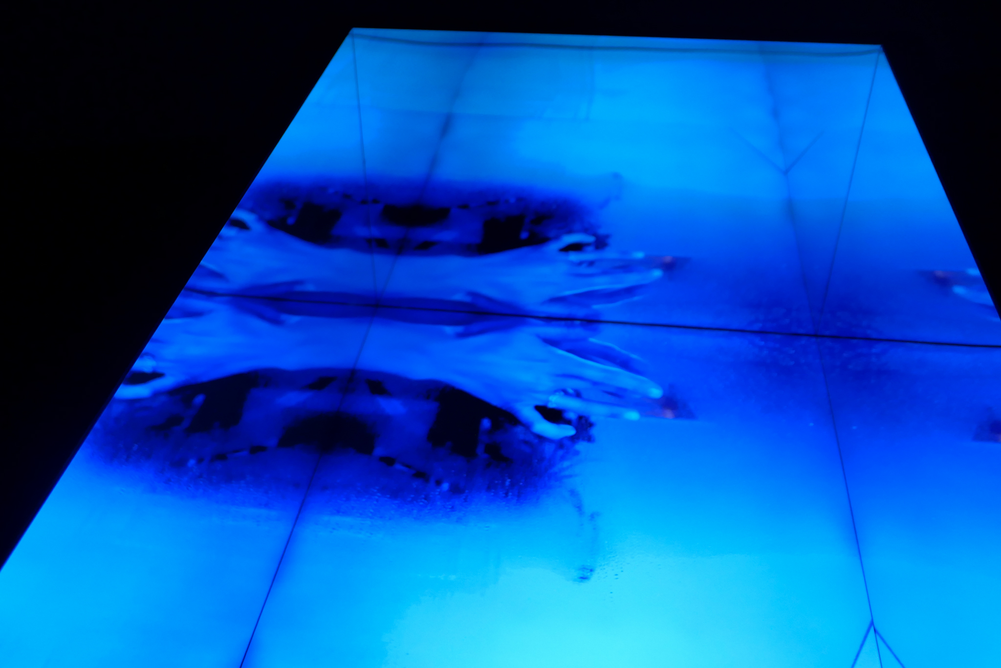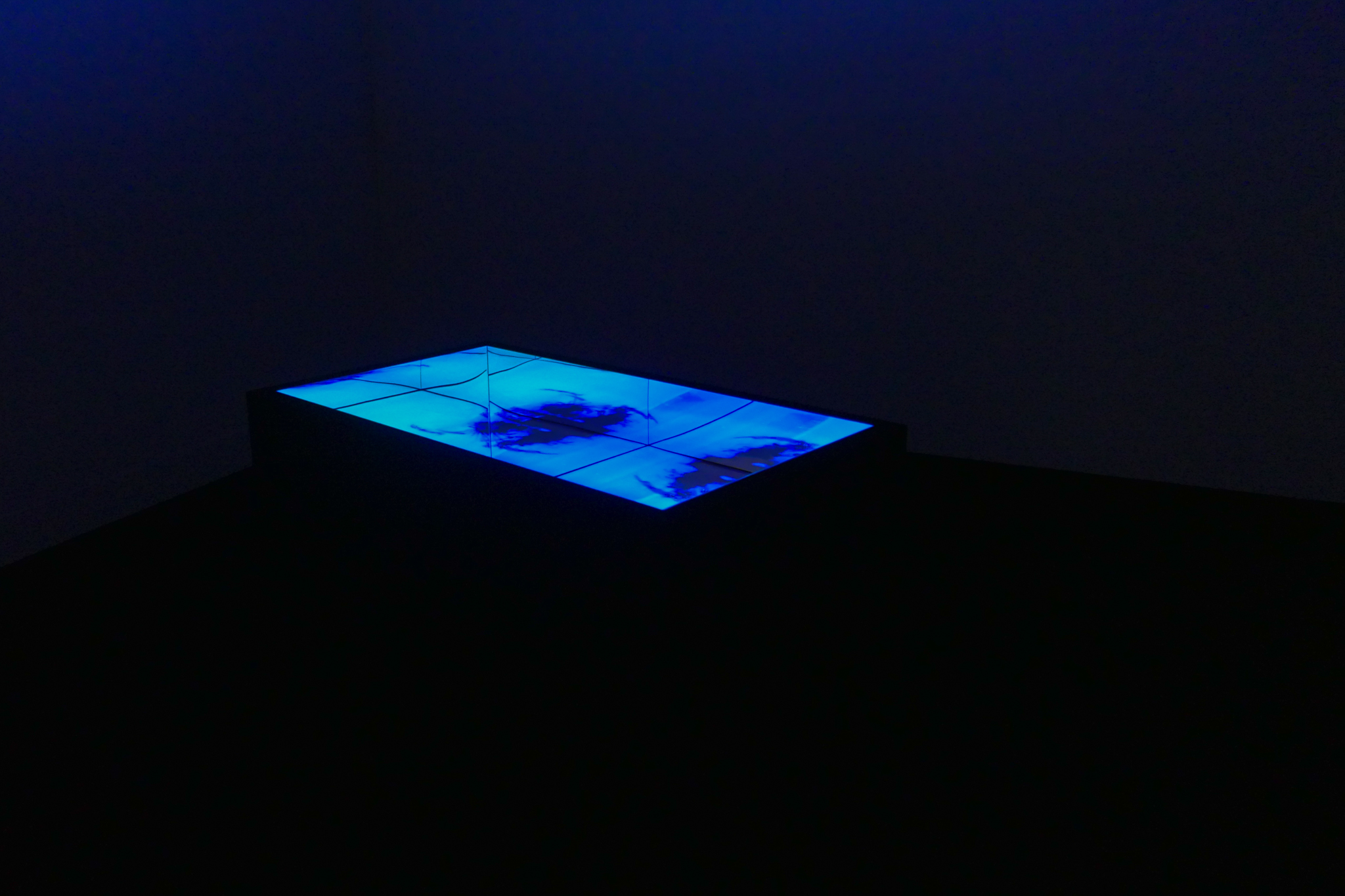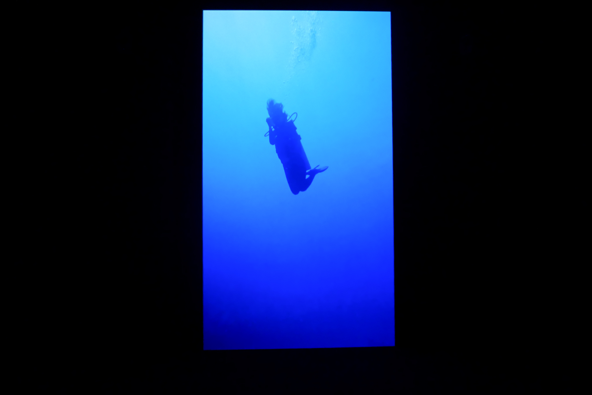キュンチョメの《海の中に祈りを溶かす》(2022〜23)は、水中で発された祈りの言葉が泡となって海へ溶けていく映像作品だ。「芸術とは見えないものを見て、聞こえないものを聞く試み」という作家の思想が体現されている。薄暗い空間にいくつものクッションが置いてあり、海中に浮くような落ち着いた雰囲気も楽しめる。