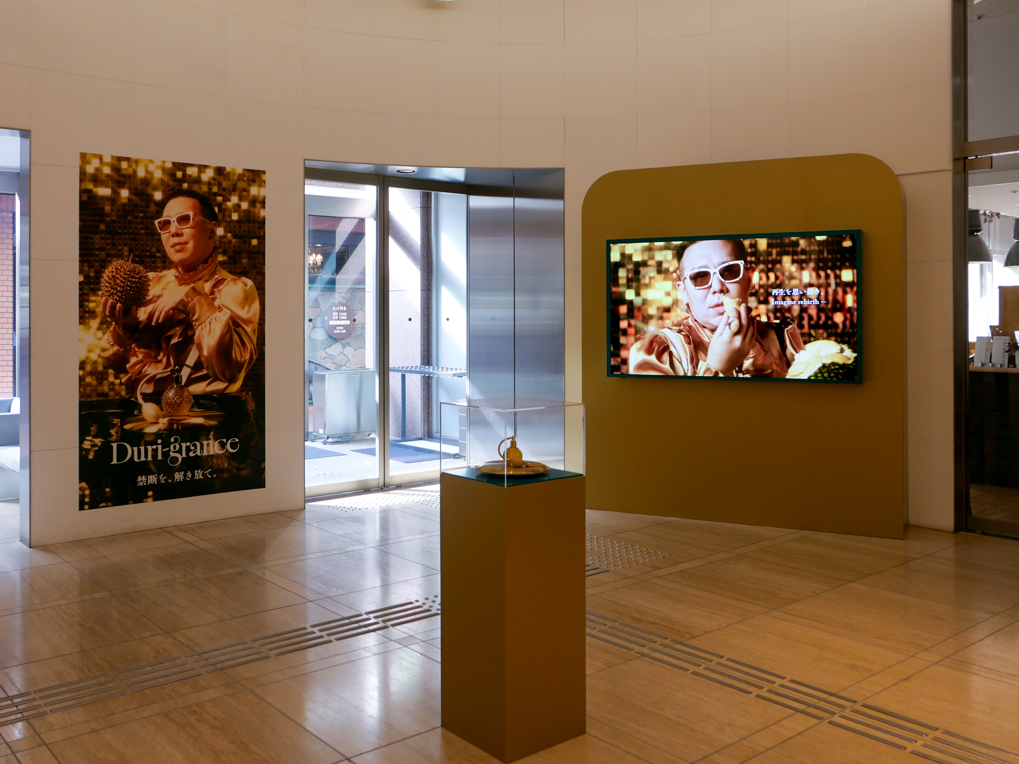 さらに屋外では、恵比寿ガーデンプレイスのセンター広場でエキソニモ《Kiss, or Dual Monitors》(2017)の巨大LED版が出現し、目を閉じた人々の顔が重なり合う映像が通りすがりの人々を巻き込む。いっぽう、同館の外壁や恵比寿スカイウォークでは、FAMEMEによるドリアンと香水を融合させた新作《Duri-grance by FAMEME》(2026)も登場する。日常に溶け込む面白い仕掛けにぜひ注目してほしい。